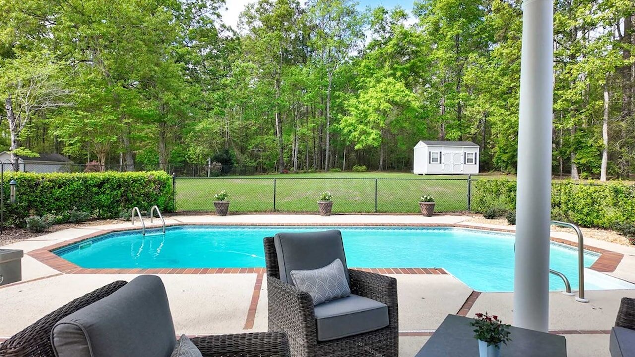 Location, swimming pool, space and privacy! Located on the desirable Tallahassee side of Thomasville in the highly sought-after Polana neighborhood, this spacious 4-bedroom, 2-bath home offers the perfect blend of comfort, style, and convenience. Inside, you’ll find beautiful hardwood flooring throughout and thoughtfully designed built-ins that add both character and functionality. The inviting living room features a cozy fireplace, perfect for relaxing on cooler evenings, while the formal dining room and breakfast nook provide ideal spaces for both entertaining and everyday living. Updated French doors bring in natural light and create a seamless connection to the outdoor living space. The spacious primary suite is a true retreat, featuring a trey ceiling, a separate sitting area, and an ensuite bathroom complete with double vanities, a garden tub, separate shower, and a walk-in closet. Step outside to your private backyard oasis, complete with an in-ground swimming pool, a covered patio, and plenty of space to relax or entertain. Situated on just under an acre, the property backs up to a large, privately owned tract of land, offering added privacy and a peaceful natural setting. Additional updates include a new HVAC system installed in 2023, providing peace of mind and energy efficiency. Conveniently located just minutes from downtown Thomasville, shopping, and dining, this home truly has it all.