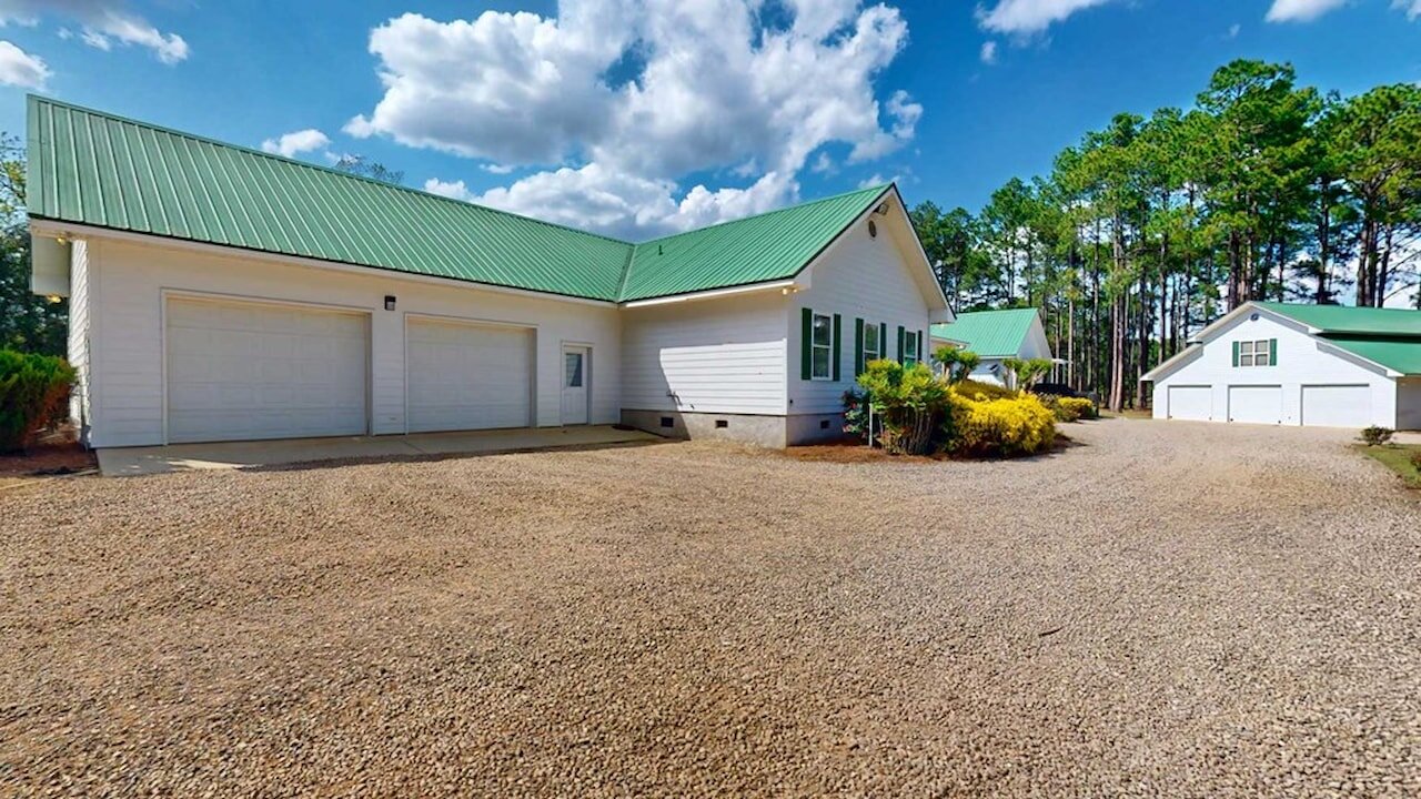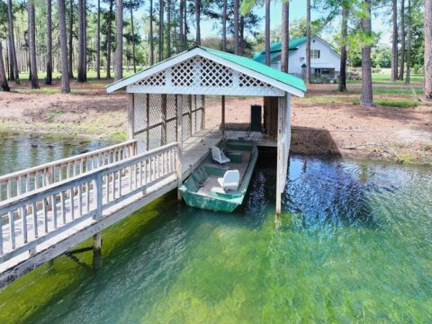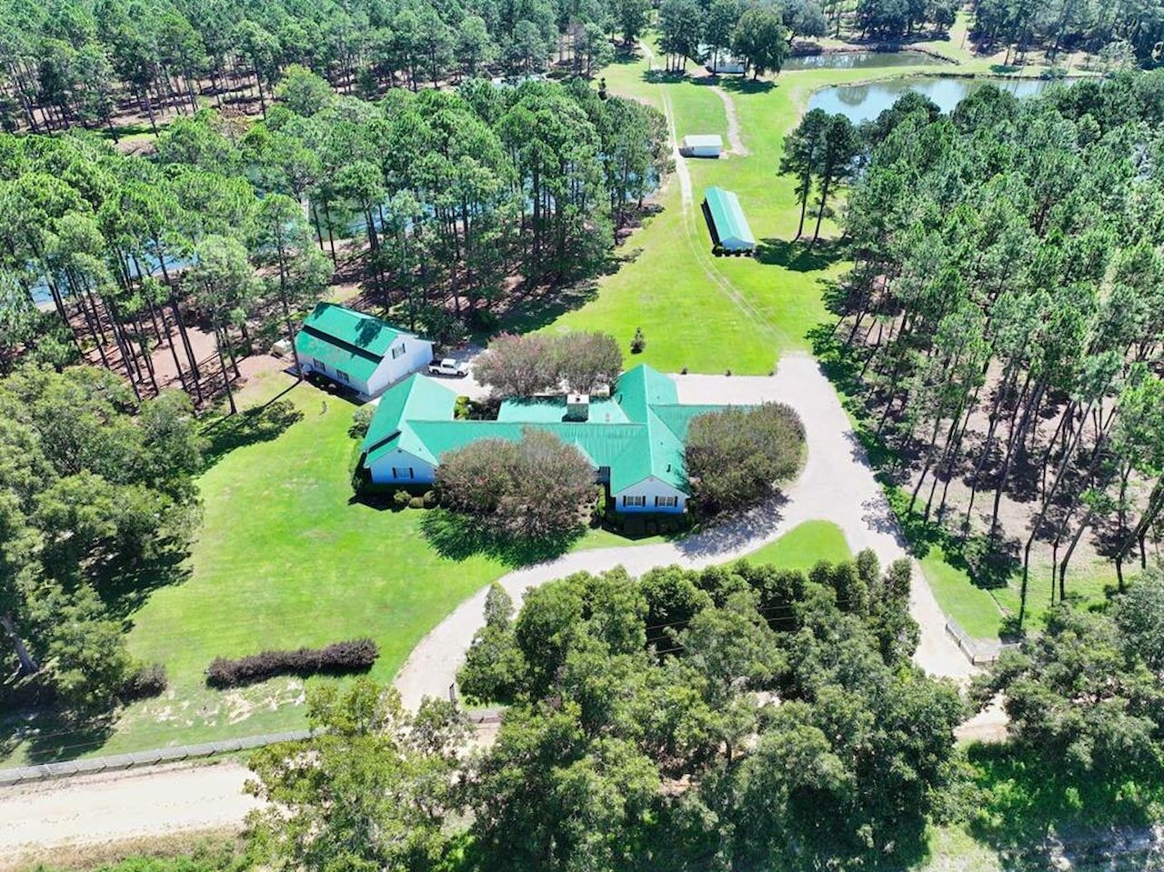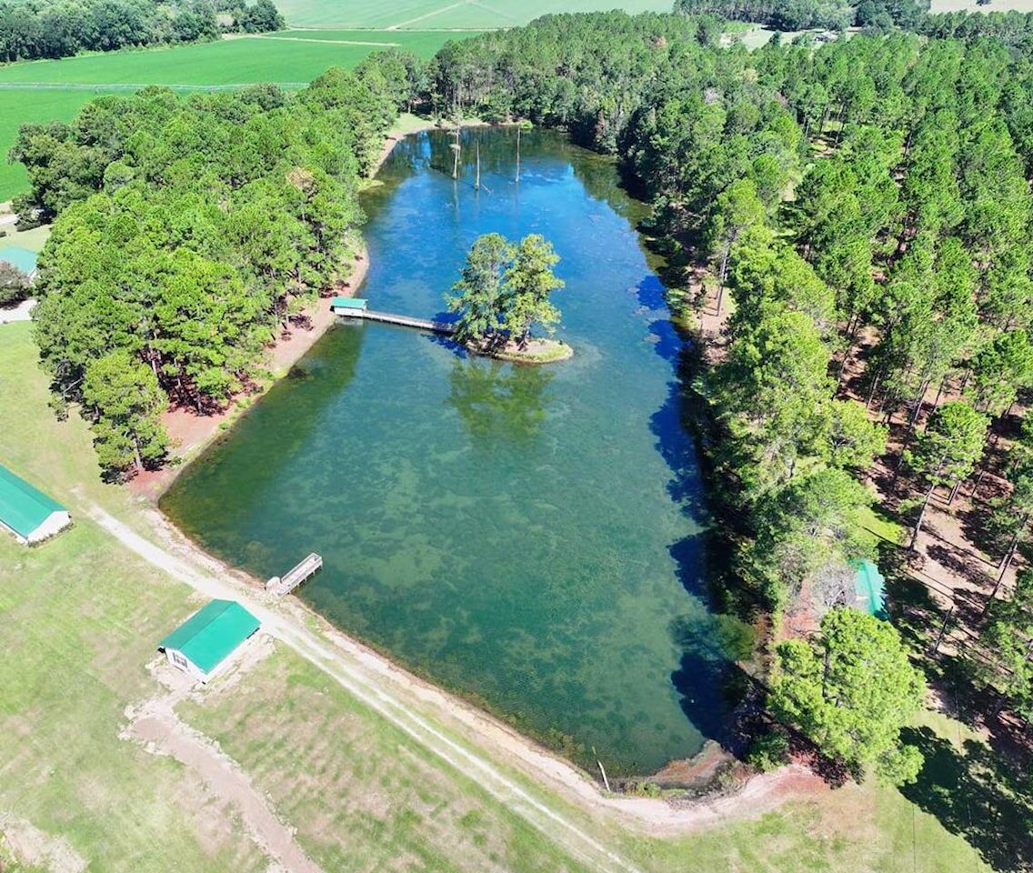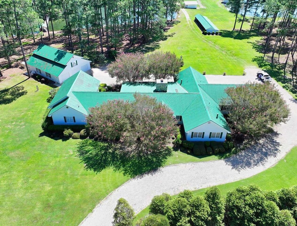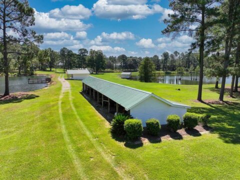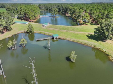 Welcome to the Bozeman Farm, a South Georgia waterfront retreat where mornings begin on the water and evenings end by the fire. Located in Thomas County, Georgia, this 72.88-acre estate is designed for the way you want to live. With three stocked, established lakes, planted pines, and room to hunt, fish, garden, and roam, this property offers the full outdoor lifestyle with privacy and flexibility. The well maintained main home features a thoughtfully designed single-level, split floor plan with 5 bedrooms, 5 baths, and 4 fireplaces. A very large den/family room with a fireplace serves as a central gathering space, while the kitchen offers abundant pantry storage and newer stainless appliances. The primary suite is a secluded sanctuary with its own fireplace, two full bathrooms, and two walk-in closets. A spacious secondary ensuite, formerly used as a dedicated study, has a fireplace and adds flexibility to the layout. The light-filled, heated and cooled sunroom, known as the ‘Terrace,’ also features a fireplace and provides a comfortable space to enjoy year-round. A heated and cooled 2-car garage adds convenience and functionality. This property is built for organization and ease, offering exceptional storage throughout. A large workshop/garage behind the home accommodates multiple vehicles and includes an upstairs space ideal for hobbies or additional storage. Additional outbuildings, including a pole barn and two spacious shops with power and roll-up doors, provide ample room for equipment while keeping everything neatly tucked away. Everything has its place, making this a truly turnkey property. Two guest homes, both set along the lake, offer comfortable accommodations for family or guests. One features a studio-style layout with an open living/sleeping space and bathroom, while the other includes a bedroom, bathroom, living area, kitchen, and screened porch. With two wells, generous road frontage, and potential for subdividing, the property offers both immediate enjoyment and long-term value. A rare opportunity to own a property that truly has it all.