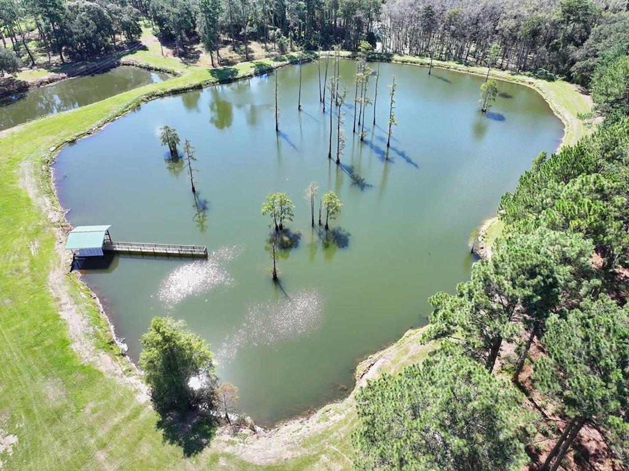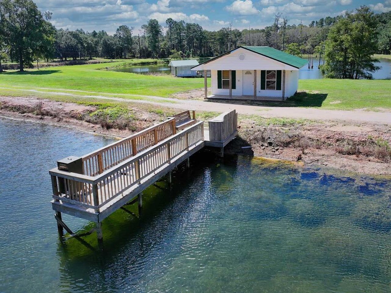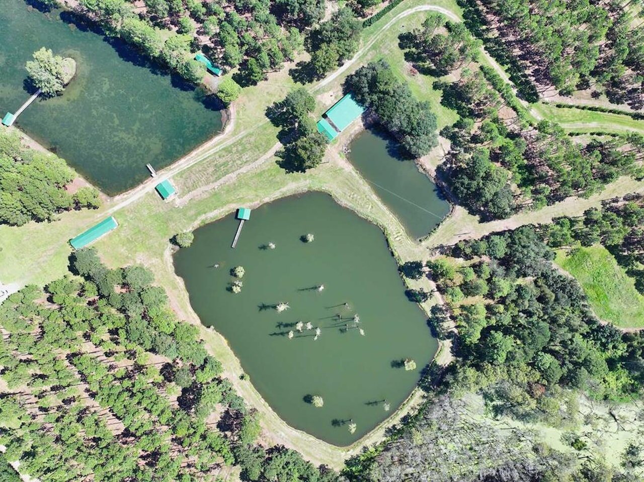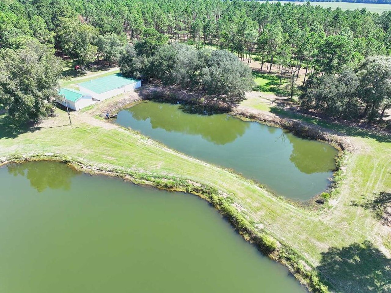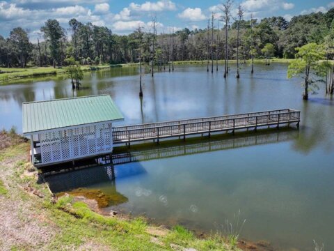 Welcome to the Bozeman Farm, a South Georgia waterfront retreat where mornings begin on the water and evenings end by the fire. Located in Thomas County, Georgia, this 72.88-acre estate is designed for the way you want to live. With three stocked, established lakes, planted pines, and room to hunt, fish, garden, and roam, this property offers the full outdoor lifestyle with privacy and flexibility. The well maintained main home features a thoughtfully designed single-level, split floor plan with 5 bedrooms, 5 baths, and 4 fireplaces. A very large den/family room with a fireplace serves as a central gathering space, while the kitchen offers abundant pantry storage and newer stainless appliances. The primary suite is a secluded sanctuary with its own fireplace, two full bathrooms, and two walk-in closets. A spacious secondary ensuite, formerly used as a dedicated study, has a fireplace and adds flexibility to the layout. The light-filled, heated and cooled sunroom, known as the ‘Terrace,’ also features a fireplace and provides a comfortable space to enjoy year-round. A heated and cooled 2-car garage adds convenience and functionality. This property is built for organization and ease, offering exceptional storage throughout. A large workshop/garage behind the home accommodates multiple vehicles and includes an upstairs space ideal for hobbies or additional storage. Additional outbuildings, including a pole barn and two spacious shops with power and roll-up doors, provide ample room for equipment while keeping everything neatly tucked away. Everything has its place, making this a truly turnkey property. Two guest homes, both set along the lake, offer comfortable accommodations for family or guests. One features a studio-style layout with an open living/sleeping space and bathroom, while the other includes a bedroom, bathroom, living area, kitchen, and screened porch. With two wells, generous road frontage, and potential for subdividing, the property offers both immediate enjoyment and long-term value. A rare opportunity to own a property that truly has it all.