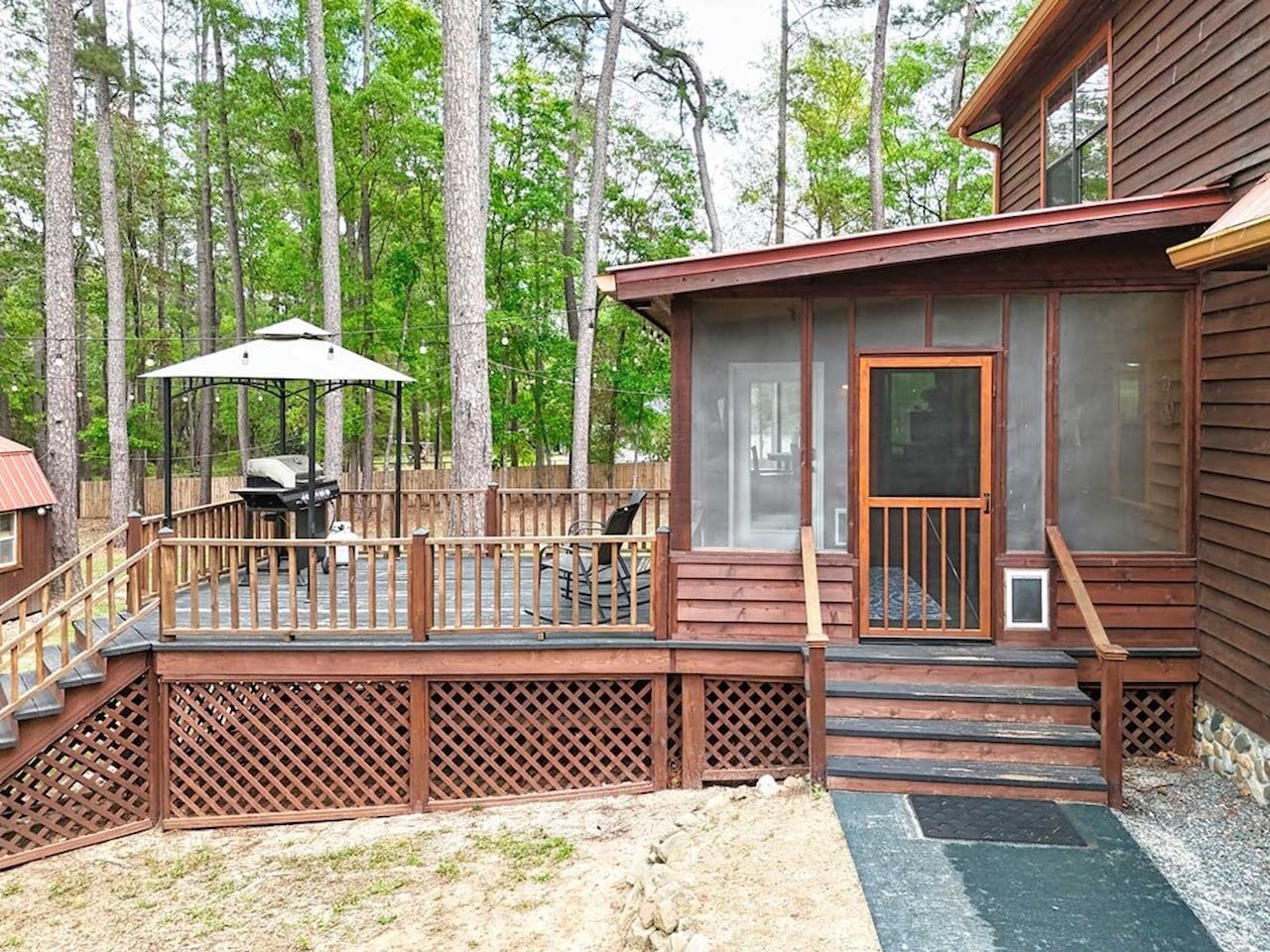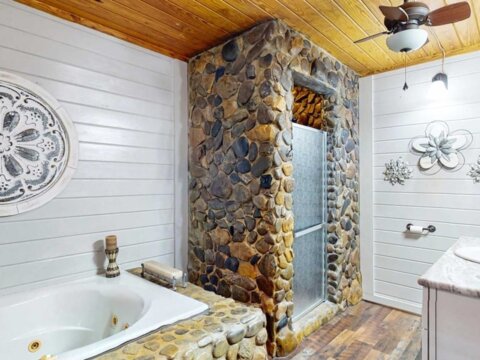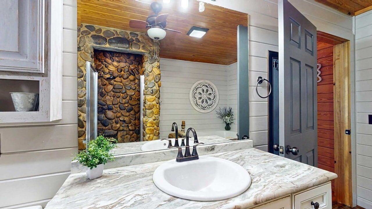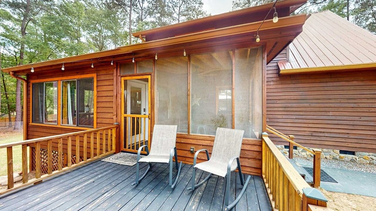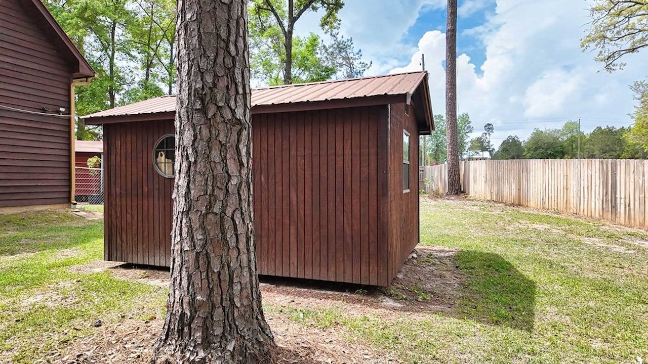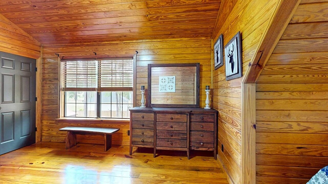 Step into a storybook setting with this charming rustic cabin tucked away in Plantation Woods on the south side of Thomasville, where warmth and thoughtful updates meet peaceful acreage. From the moment you enter, you’re greeted by rich pine floors, soaring ceilings, and a striking stone fireplace that anchors the living space with character and comfort. The kitchen and breakfast area offer an easy, inviting flow, while the main bathroom feels like a retreat with its stone-wrapped tub and shower. This home isn’t just beautiful, it’s been extensively improved. The kitchen has been upgraded with new cabinets, granite countertops, backsplash, and a full suite of newer appliances including dishwasher, refrigerator, and microwave, plus a new garbage disposal. Downstairs features updated flooring throughout, along with new bathroom cabinetry, sinks, and hardware. You’ll also find a newer hot water heater, new water softener, and updated lighting and ceiling fans both upstairs and down. Additional updates continue throughout the property, including all new wired smoke detectors, fresh paint on interior doors, and newly installed porch fans. Outside, the property truly shines. Set on a spacious 1.28-acre lot, the home includes a detached garage plus a fully upgraded “man cave” space featuring brand new sheetrock, flooring, lighting, and its own split unit AC. The exterior has been recently stained, and the land has been cleared and enhanced with a beautifully landscaped rose garden out front. A brand new privacy fence and chain link fencing, valued at approximately $13,000, adds both function and appeal. With a large sun porch, rear screened porch, and a long list of meaningful upgrades already completed, this home offers both charm and value. It’s the kind of place where the big-ticket items are already handled, letting a new owner simply move in and enjoy the setting, the space, and the lifestyle. Call today for your private tour!